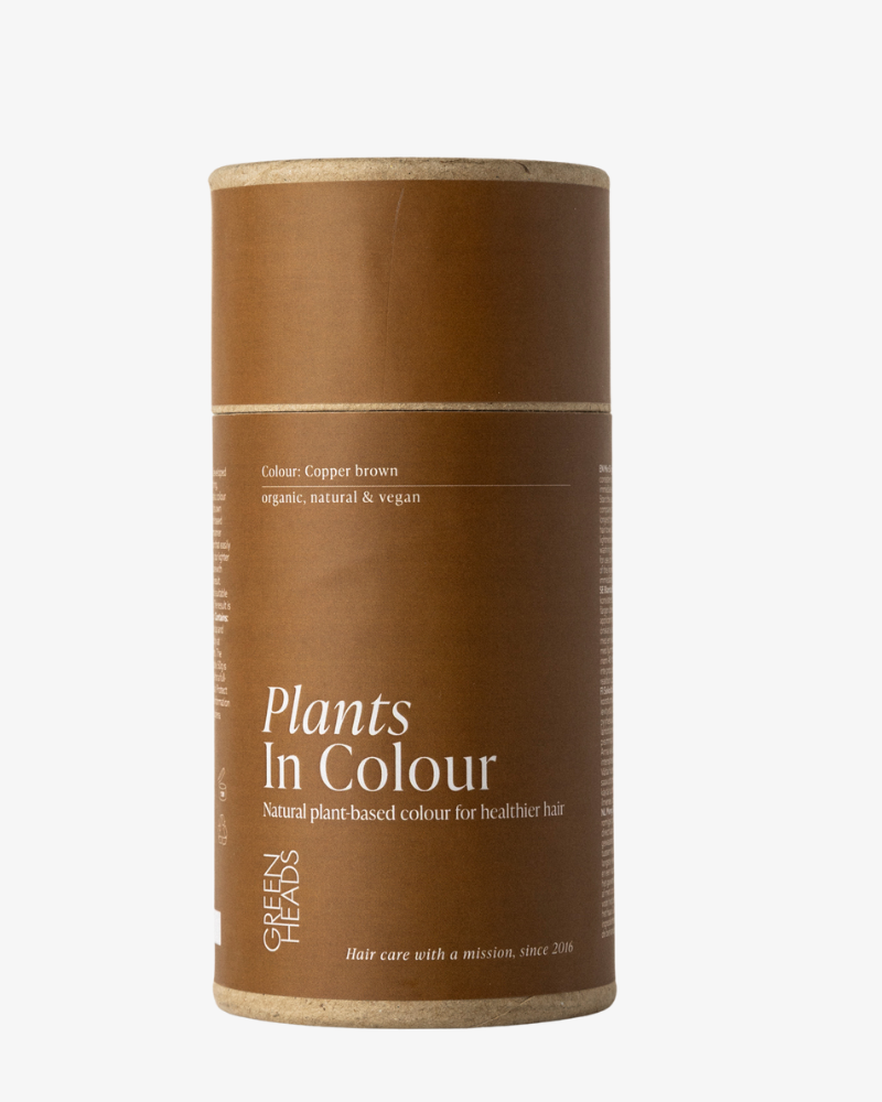 Green Heads Colour - Plants In Colour is a professionally developed plant colour series based on 100% natural and organic plants. The colours are caring, naturally moisturising, give shine and a fantastic laser-like depth of colour. The colour has a natural scent that brings to mind green tea. Plants In Colour gives the hair a more even tone in its own lightness or darker. It cannot lighten the hair. Plant colour covers grey hair with a laser-like and natural effect. The final result is only seen after 2-3 days when the colour has matured. The plant pigments adhere very well and it is not a colour that is easily faded. If you like to vary your hair colour often, our light shades are preferable.