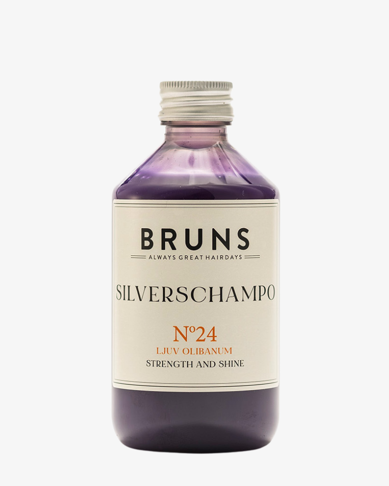 Denna produkt är ett handgjort, milt silverschampo som neutraliserar gula toner i blonda, grå och blekta hår. Schampot passar även dig med ett sönderblekt och skadat hår som är i behov av extra vård. Produkten är egentillverkad med en skonsam formulering och ger ditt hår både glans och volym. Fungerar även för dig med löshår och/eller färgat hår. Eteriska oljor ger en fräsch doft av grapefrukt och olibanum. Finns även som doftfri!
