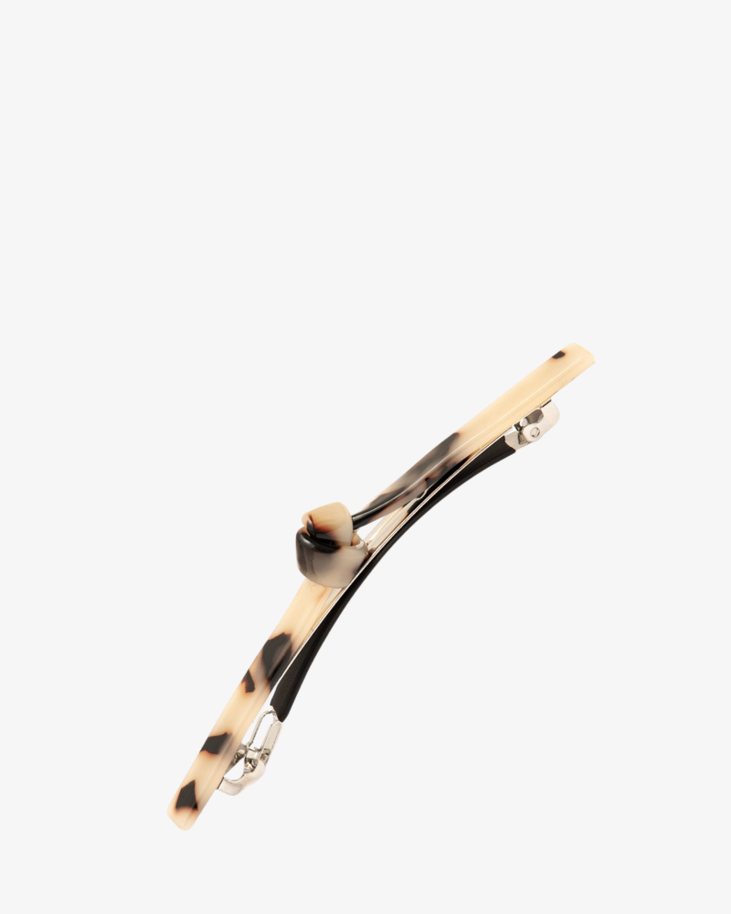 Kira är ett klassiskt rakt hårspänne med push-clip spänne och elegant knutdetalj. Kan stylas på flera olika sätt.