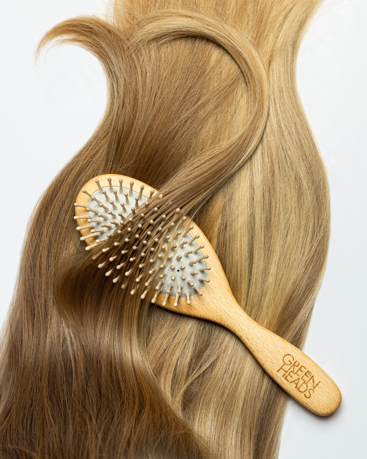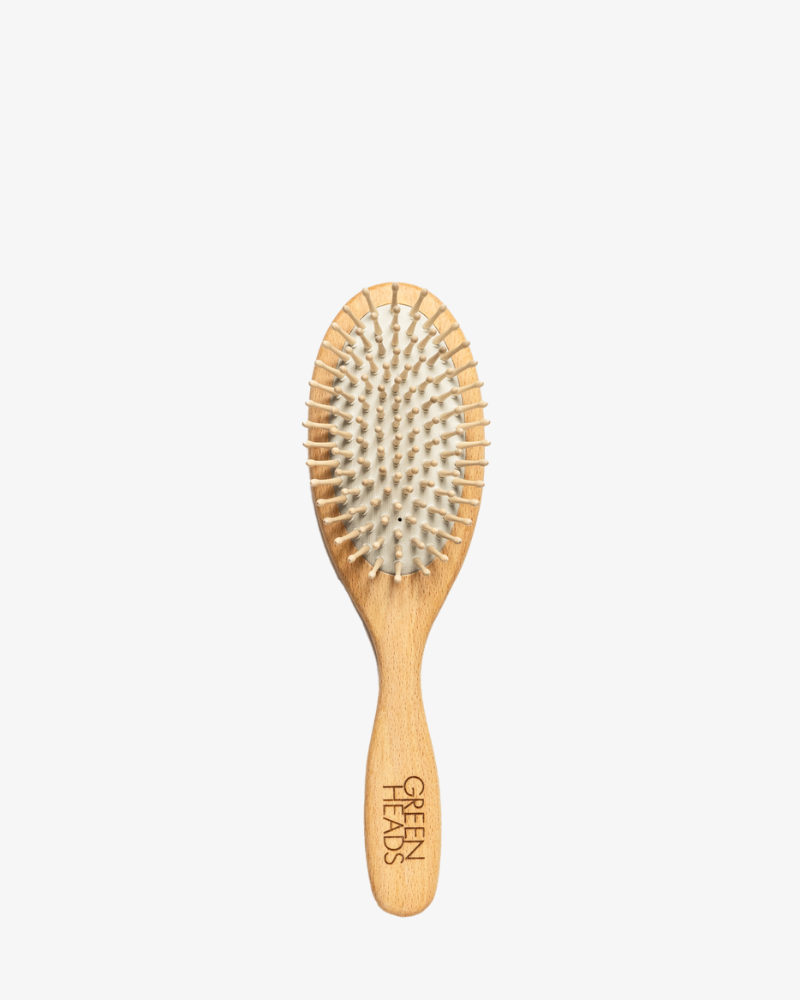 Green Heads träpiggsborste är extra skonsam för både hår och hårbotten. Med sina rundade träpiggar stimulerar och masserar den hårbotten vilket ökar blodcirkulationen som i sin tur stärker både hår och hårtillväxt.Vår träborste är både allergen-neutral och antistatisk. Den är kan även användas både i tort och fuktigt hår samt vid lättare föning. Borsten absorberar också överskott av talg och andra orenheter i håret.